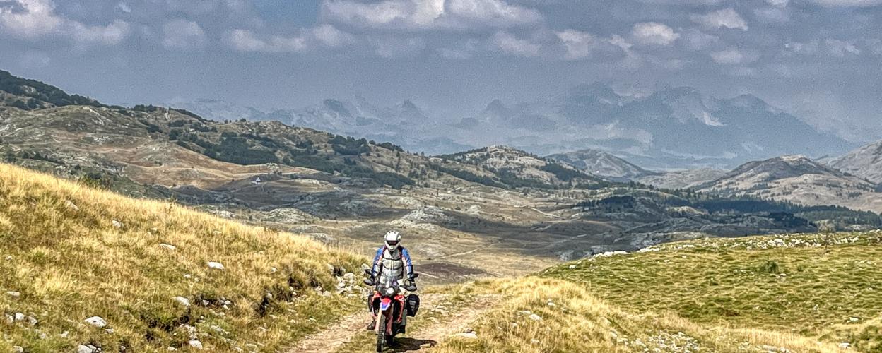 All the more reason for off-road enthusiasts to appreciate this unique landscape, which is the setting for the following tour. The route begins on the M 6 between Šavnik and Žabljak. Shortly before the village of Provalija, turn right onto a small asphalt road. This road crosses the Bukovica River, then requires a right turn followed by a left. From here, the road transitions into a hybrid between pavement and track. After a handful of uphill curves, the plateau unfolds before your eyes. What a view: green alpine meadows and high pastures, gentle hills, bright rocks—a landscape resembling an egg carton.